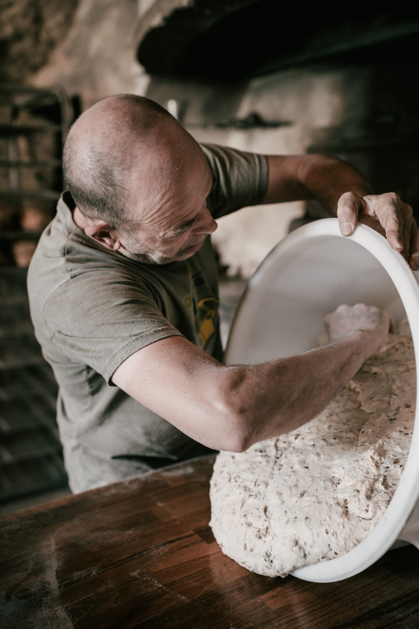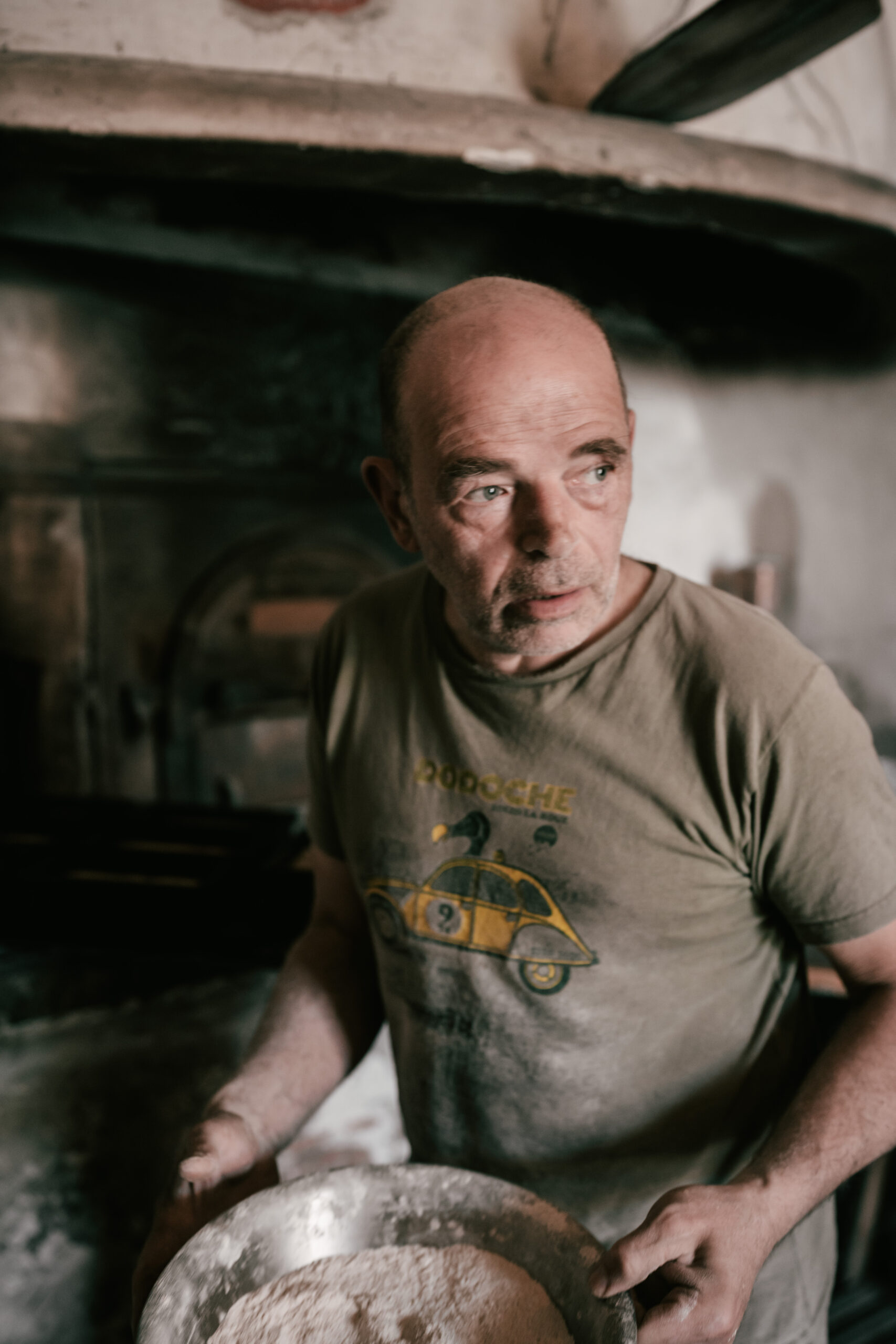 Lionel a ravivé la flamme du four à pain de Vachères. Personne ne pourrait affirmer avec certitude la dernière fois qu’il a été mis en marche. Cet ancien Parisien, passionné de cyclisme, de mécanique et de Polaroid, produit deux fournées par semaine. Une qui sera livrée avec son camion blanc (beaucoup trop grand), tandis que l’autre sera vendue au marché d’Apt. Le plus dur dans tout ça, c’est de parvenir à perpétuer un pain identique au fil des semaines. Dès lors, cette série est une échappée dans cette quête éperdue de Lionel et de son quotidien rythmé par la pâte qui gonfle, l’odeur du pain qui enrobe son fournil, et les échardes qui tapissent ses mains.